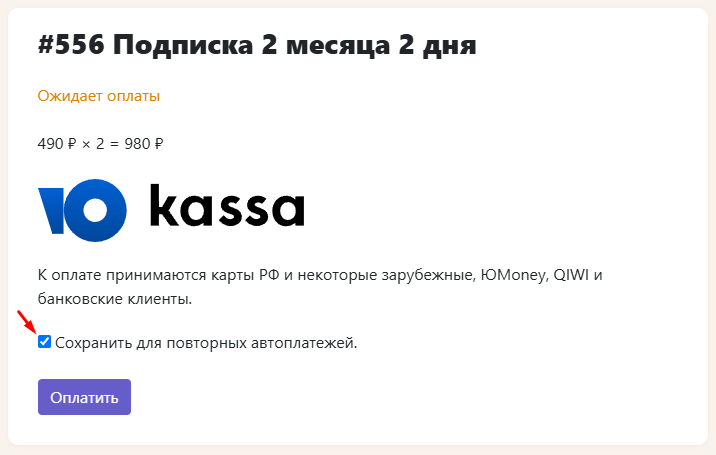 При оформлении заказа вы можете сохранить способ оплаты для автоматического продления подписки